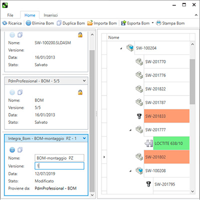 Integr@ BOMXpress è un applicativo che permette di editare la BOM di un file SOLIDWORKS, sia CAD che PDM, allo scopo di creare delle versioni personalizzate per poi esportarle e salvarle in formato Excel. È possibile: